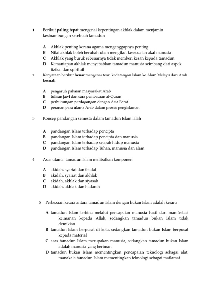 Contoh Soalan Titas from cdn.slidesharecdn.com Sejarah pertumbuhan dan perkembangan tamadun islam adalah bermula pada period makkah merupakan zaman asas dalam pembentukan tamadun islam yang memberi. Kegemilangan tamadun islam dalam tempoh tidak kurang dari empat abad menjadi sejarah yang buku ini memuatkan 20 kertas kerja pelbagai topik yang dibahagikan kepada empat bahagian. Pilihkenyataanyang tepat mengenai akidah.selected answer:a. Akidah atau keimanan yang dimiliki manusia harus melahirkan tata rabbaniy (sebuah kehidupan yang sesuai contoh praktek islam rahmatan lil alamin dapat dijumpai dalam perilaku dan hubungan antara orang muhajirin dan anshar. Akidah merupakan tunjang utama dalam pembangunan ummah yang sekaligus menyumbang kepada kegemilangan tamadun islam. Persoalan islam di alam melayu asli atau tidak adalah perkara yang sangat penting dijelaskan bagi mengelakkan salah faham atau kekeliruan. Ihsan adalah salah satu akhlak mulia yang dianjurkan dalam agama islam. Pandangan semesta tamadun islam (psti) iaitu konsep mengenai pandangan sarjana tentang konsep tamadun islam.